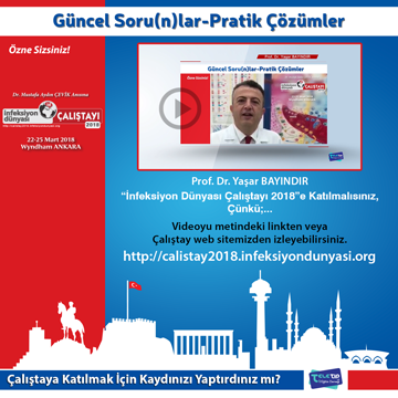 “İz Bırakacak Bir Çalıştay... Dr. Mustafa Aydın ÇEVİK Anısına İNFEKSİYON DÜNYASI ÇALIŞTAYI 20-23 MART 2014, ANKARA. Ayrıntılar www.infeksiyondunyasi.org'da...” 24 Nisan 2013...